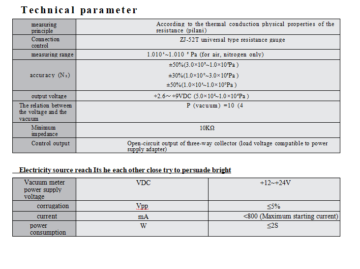 用于 5*E-2 和 1.0*E5Pa 之間的氣體真空測量。